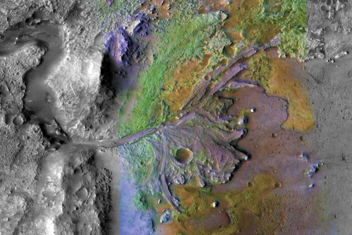 Для того, чтобы ответить на эти вопросы марсоход НАСА «Perseverance» («Настойчивость») в настоящее время ворчит копает и бурит кратер Езеро на Марсе. В этом месте, как считают ученые, миллиарды лет назад находилась дельта древней реки. И действительно – где разумнее всего можно искать признаки существования сложной органики?