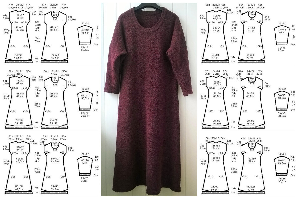 Платье из буклированной пряжи со свободной проймой. Ч.1 Выкройки на 6 размеров