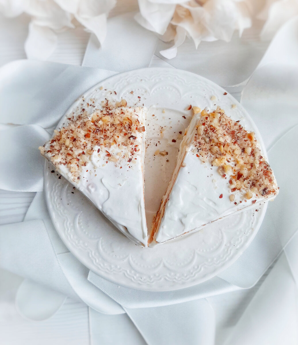 🍰КБЖУ на 100 г.: 122 ккал 13.4/4.5/7 Выход: 275 г, 336 ккал на весь тортик. 🍰Ингредиенты: ▫️Для основы: Творог 5% - 100 г. Яйцо куриное - 1 шт. Мука кукурузная - 20 г. Разрыхлитель - 1/2 ч.л. Подсластитель по вкусу, у меня 4 м.л. Prebiosweet fibre. ▫️Для крема: Творог мягкий 0.1% - 120 г. Ванилин - 1/3 ч.л. Подсластитель. 🍰Приготовление: 1️⃣ Вилочкой в миске перемешиваем: 100 г. творога, одно яйцо, 20 г. кукурузной муки, половину чайной ложки разрыхлителя и подсластитель, у меня в качестве сах.зама - 4 мерные ложечки Prebiosweet. 2️⃣ Выкладываем тесто на холодную сковороду, без масла и постепенно чуть влажной лопаткой, разравниваем в кружок. 3️⃣ Включаем плиту на средний огонь, накрываем крышкой и оставляем минут на 7-10. 4️⃣ По прошествии времени, переворачиваем наш творожный блин на другую сторону и накрыв крышкой поджариваем ещё 3-4 минуты. 5️⃣ Снимаем блин со сковороды, остужаем и делим на 4 кусочка . 6️⃣ Для крема смешиваем мягкий творог, треть чайной ложки ванилина и подсласт