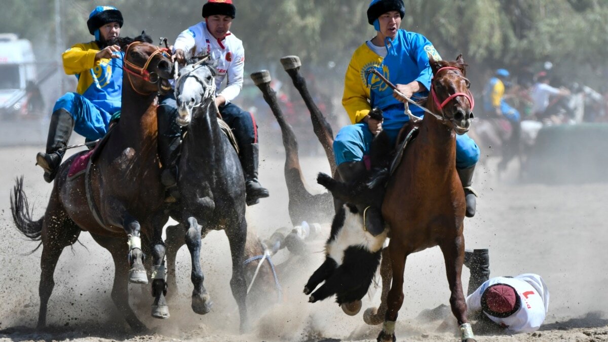 А вы знаете что такое кок-бору это кыргызская национальная игра Кок-бору - это симбиоз скачек и игры. Всадники борются за шкуру козла, которой необходимо не только завладеть, но и удержать, а затем забросить в «казан» (ворота) команды соперника. Игры по кок-бору в Кыргызстане проводятся в дни официальных праздников и в выходные на ипподромах, которые посещает множество людей.