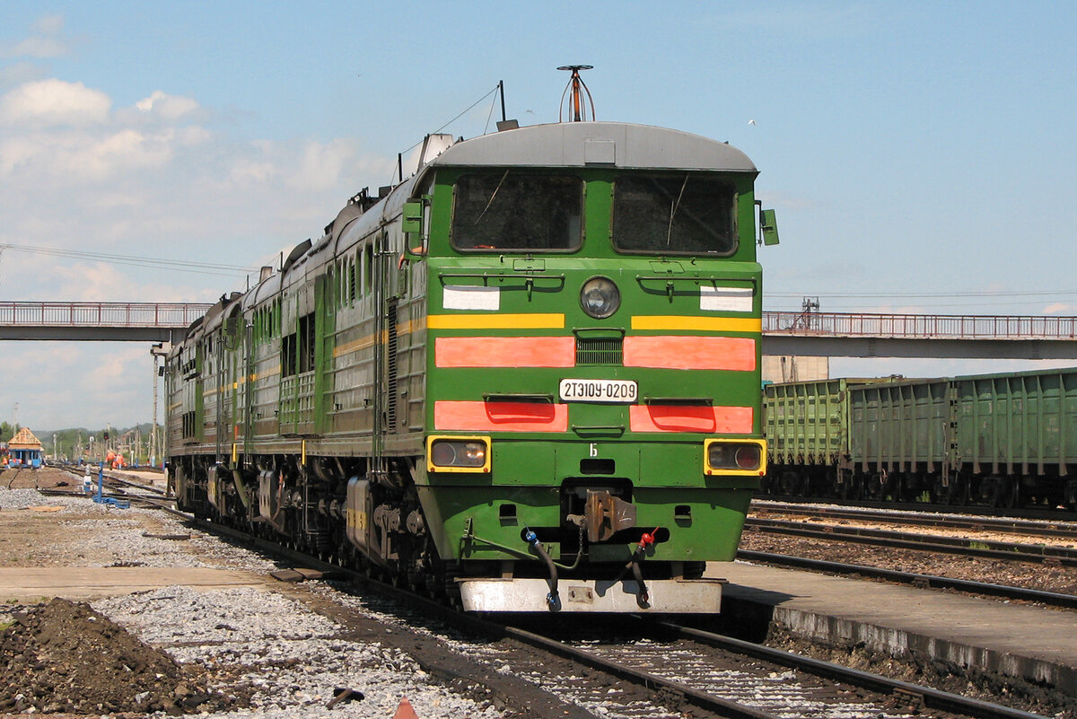 У ТЧГ мы узнали что поездов тут не много - около 3 пар в сутки. Да, с такой частотой движения поймать что-то на перегоне не представлялось возможным, однако мы решили рискнуть. Пошли за северную горловину. По пути сняли стоящий на отправление резак состоящий из двух 2ТЭ10, один из них знакомый 2ТЭ10У-0209: