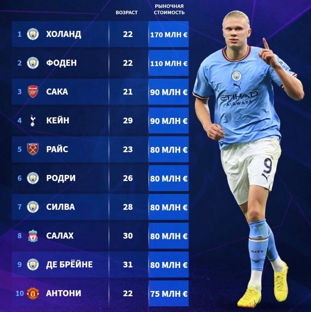 Самые дорогие футболисты АПЛ по данным Transfermarkt.