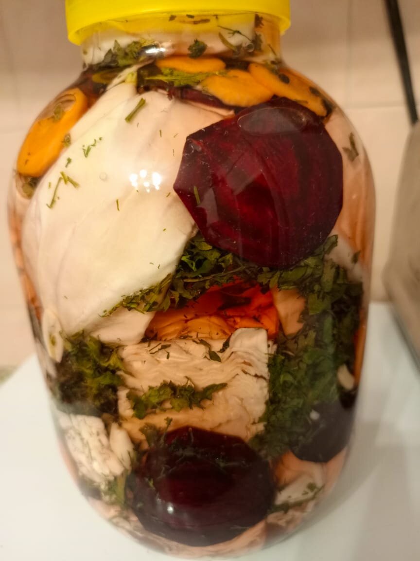 На кухне Зелёной улицы во всю идёт подготовка к предстоящей зиме и заморозкам. Заготовка капусты здесь не исключение. В этот раз мы решили немного поэкспериментировать и разнообразить рецепты привычной нам квашеной капусты.