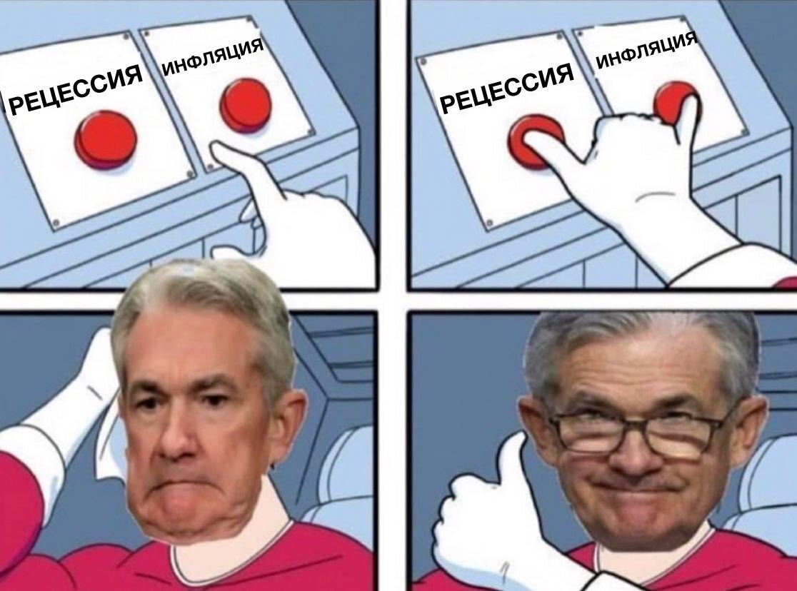 На картинке как раз он. Решает не выбирать между инфляцией или рецессией и на широкую ногу берет оба явления 😂