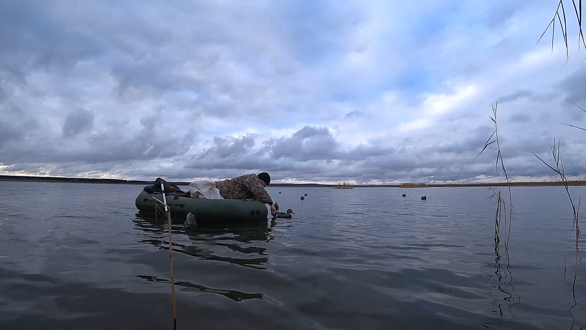 Погода в ноябре на Среднем Урале очень нестабильная. Светит солнце ветра совсем нет, а через час могут пройти ливневые дожди или выпасть снег. В эту охоту обошлось без дождей и это очень хорошо, так как очень не хотелось в +5С, промокнуть и вынуждено закончить охоту. С нашей природой даже синоптики угадывают 50 на 50. Накачав лодку, я заплыл в камыши на озере и начал расставлять чучела. Ветер то разгонялся протаскивая серые тучи, то затихал полностью. Для охоты с утиными чучелами, сильный ветер конечно большая помеха, так же как и для охотника. Никакого отдыха, чучела болтаются как корабли в шторм, а ты пытаешься найти комфортное положение от пронизывающего, вездесущего достаточно холодного ветра. "Тишины" конечно в этот раз было больше и охотиться, а лучше сказать отдыхать на охоте было достаточно комфортно. Особенно с идеальным изобретением человечества-термосом, в котором горячий травяной чай собственного сбора. Активность утки была никакой, если считать по шкале из десяти, пр