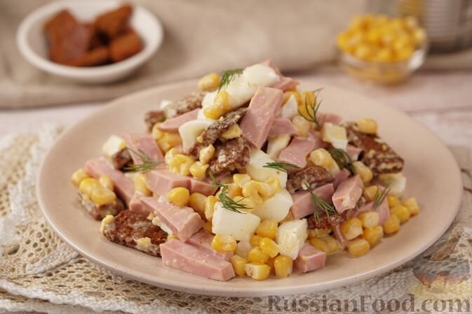 Салат с колбасой, кукурузой и сухариками. Салат с курицей, свёклой и фасолью. Салат с куриной печенью, тыквой и тыквенными семечками. Салат с крабовыми палочками и морковью по-корейски. Салат с курицей, ветчиной, ананасами и грибами. Греческий салат с макаронами. Острая маринованная капуста с овощами и лаймом. Салат с курицей, свёклой, фасолью и маринованными огурцами обладает насыщенным вкусом и гарантирует сытость. Отварное куриное филе и свёкла дополнены кислинкой маринованных огурчиков. Аппетитный аромат блюду придаёт обжаренный репчатый лук и свежая зелень. Салат с куриной печенью, тыквой и тыквенными семечками – необычное блюдо с гармоничным сочетанием компонентов. Нежная куриная печень отлично сочетается с обжаренной тыквой, а благодаря заправке из соевого соуса, мёда и чёрного молотого перца салат приобретает особый вкус. Это отличное самостоятельное блюдо, а нарядный внешний вид позволяет подать его на торжество. Когда хочется есть, но не хочется долго готовить, выручит рецеп
