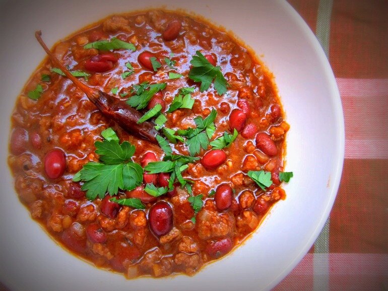Чили кон карне – блюдо мексиканской и техасской кухонь. Название взято из испанского языка и означает буквально «чили с мясом». Основные компоненты – это острый перец и измельчённое мясо, все остальные ингредиенты добавляют в зависимости от региона или личных вкусовых предпочтений.