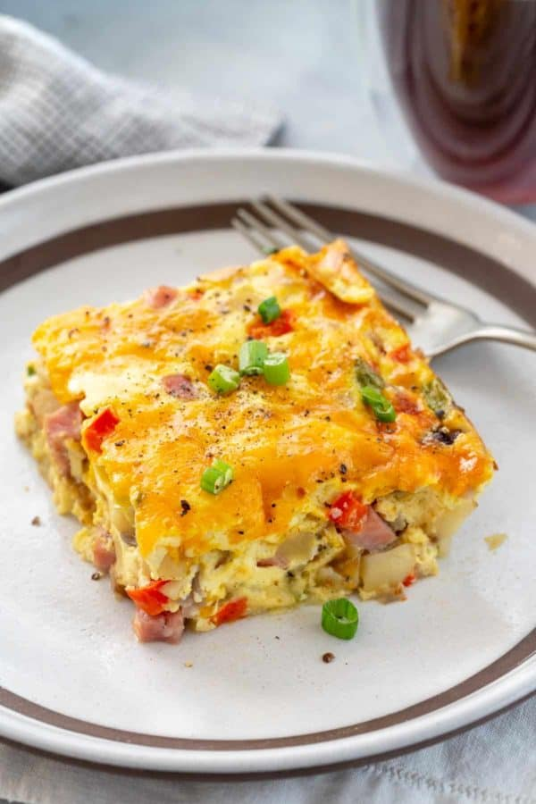 Этот простой рецепт запеканки для завтрака изменил жизнь в нашем доме. Из нее получается большая порция еды, которой можно накормить толпу, и ее можно завернуть и съесть в качестве быстрого блюда. В следующий раз я планирую изменить начинку, добавив грибы, шпинат, цуккини, сладкий картофель, баттернат, вяленые помидоры, сыр пармезан, моцареллу или фету. Только количество ингредиентов и яичной смеси должно быть одинаковым.