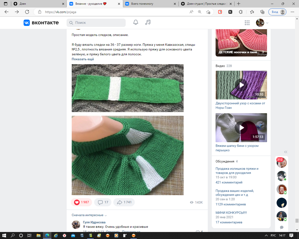 Всем привет. На носу зима, пора утепляться. У меня утепление связано с ногами. Инет буквально кишит всяческими описаниями следков. И на двух спицах, и на четырех. Но я-то люблю всё простое. В вк нашла модель простых следков. Смотрятся очень даже симпатичненько. Да еще и простота подкупает. Решила попробовать связать, посмотреть, как они в носке. Делюсь с вами тем, что у меня получилось. Я вязала без образца. У меня были спицы 2,5 и пряжа из Фикспрайса, которую я хочу быстро сработать, потому как купила сразу много, но при вязании она мне не понравилась. Для кардиганов, жилетов и иже с ними не пойдет, а на носки, следки, тапочки - пойдет на ура. Вязала я на работе - линейки под рукой не было. Сначала связала 30 петель и рядов 40. Поняла, что это сильно гигантское что-то. Закрыла петли и набрала как в посте - 20 петель. Вязала не 160 рядов, а 130. Все ряды лицевыми. Примеряла по длине ступни. Ширина мне казалась нормальной, такой, какая и должна быть. Но дома оказалось, когда померяла л