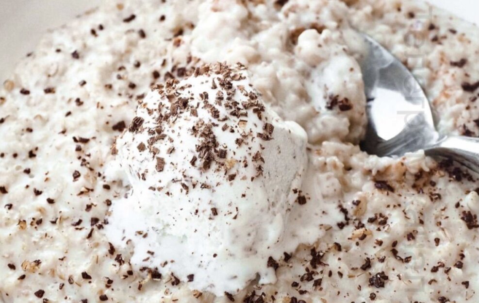 Овсяная каша с мороженным и горьким шоколадом Такие завтраки подают в кафе, но почему бы не сделать его дома ) Нам понадобится: -1 стакан овсянки (лучше брать каши которые готовятся от 15 минут) -1 стакан воды -1/2 стакана молока -1 столовая ложка сахара -1 чайная ложка соли -1/2 столовая ложка масла (сливочное) -1 шарик любимого мороженого -шоколад Приготовление: 1. Овсянку выкладываем в кастрюлю (желательно с двойным дном) и заливаем водой. 2. Ставим на огонь и доводим до кипения 3. Убавляем огонь на медленный 4. Добавляем соль, сахар ( можно по вкусу) мешаем ! Кашу правильно мешать деревянной ложкой , чтобы не повредить структуру 5. Добавляем молоко и варим до готовности 6. Когда убрали кашу с огня , добавляем масло Для подачи: выкладываем кашу в глубокую тарелку , сверху шарик мороженого и тёртый шоколад Приятного аппетита )) Перед кашей советую съесть кусочек твёрдого сыра или варёное яйцо в качестве белка)