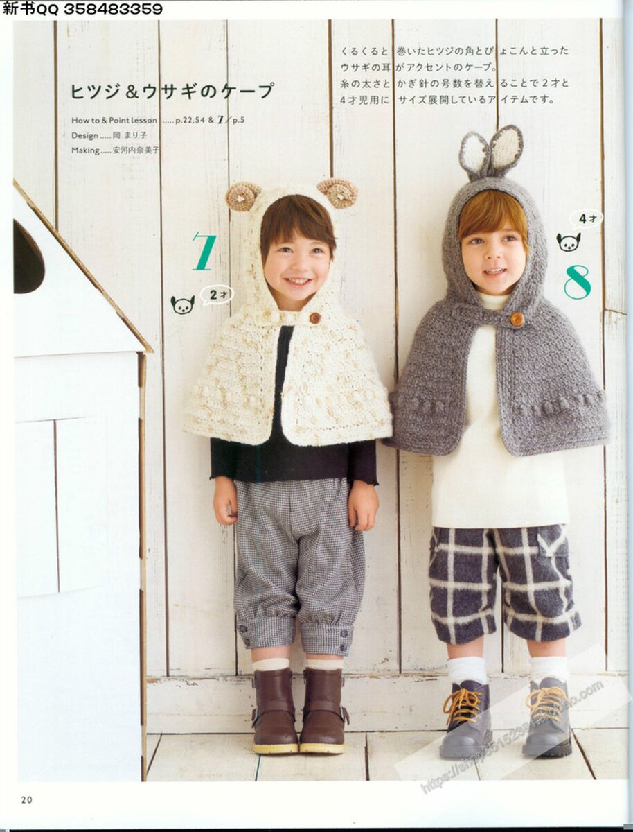 Накидки со звериными ушками на капюшоне. Описание для возраста в два и четыре года, но, как мне кажется, легко расширить на любой возраст.