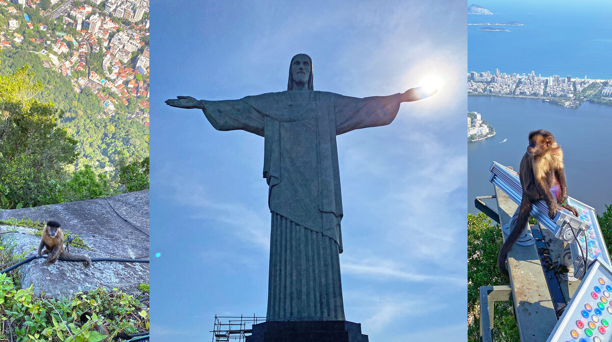 Вокруг смотровой площадки обитают обезьянки капуцины. Предупреждаю, что они очень ловкие и могут у вас что-нибудь стащить! На наших глазах произошла такая сцена: девушка неосмотрительно положила на парапет пакет с чем-то съедобным, и пока она фотографировалась на телефон, обезьянка утащила у неё этот пакет :) Ловкие они, конечно.