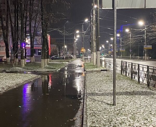 Ночью в Брянске выпал первый в этом году снег. Фоторепортаж