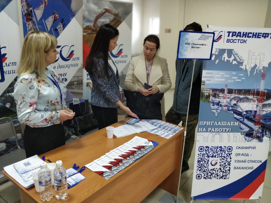 Сотрудники Иркутского районного нефтепроводного управления приняли участие в областном Молодежном карьерном форуме. Цель - ознакомление студентов профильных специальностей со спецификой работы в нефтепроводной отрасли, перспективах профессионального роста и социальных гарантиях для сотрудников. Участниками форума стали крупные работодатели региона и организации высшего и среднего профессионального образования. На мероприятии было организовано более 50 площадок для старшеклассников и студентов. ООО «Транснефть-Восток» приняло участие в «Ярмарке вакансий» в рамках форума. Сотрудники отдела кадров продемонстрировали выпускникам школ и студентам образовательных организаций фильм о деятельности компании, представили информацию об актуальных вакансиях и требованиях к уровню подготовки соискателей. Кроме того, они приняли участие в семинаре для работников кадровых служб, организованном Министерством труда и занятости Иркутской области и в заседании круглого стола, посвященном вопросам сотрудн