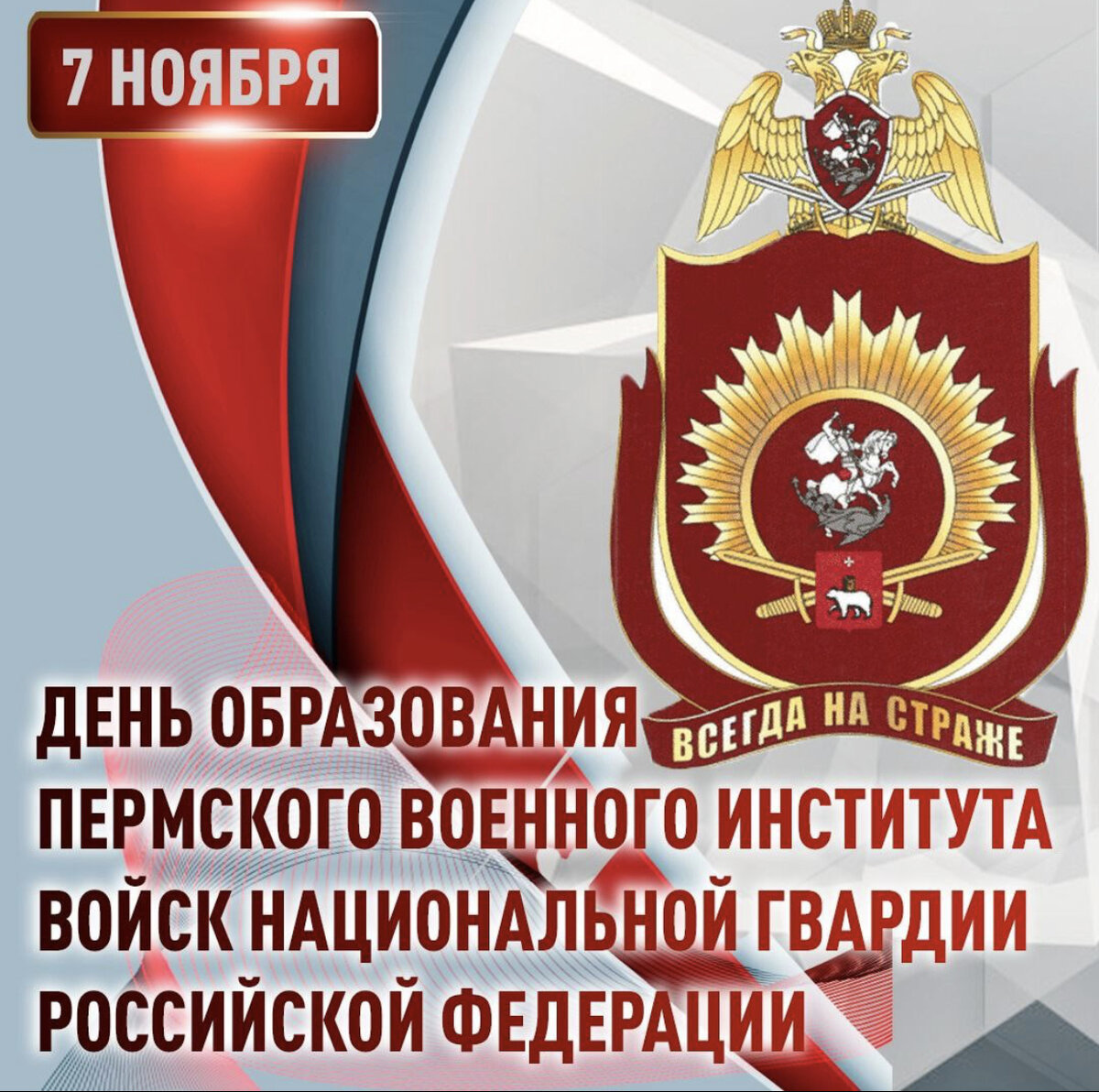 Пермский военный институт Росгвардии – один из ведущих военных вузов страны, готовящего офицеров по целому ряду специальностей. Институт был сформирован в 1981 году на базе 489-го учебного полка 84-й конвойной дивизии ВВ МВД СССР. За время своего существования он выпустил несколько тысяч высококвалифицированных специалистов тыла, технического обеспечения, связи и информационных технологий, специалистов по ремонту и эксплуатации артиллерийского вооружения, инженеров, кинологов, научно-педагогических кадров. Выпускники военного вуза проходят службу в подразделениях Росгвардии, а также в других силовых структурах страны. Многие из них сегодня участвуют в специальной военной операции, проявляя отвагу и высокий профессионализм. Наши поздравления курсантам, офицерам, педагогам и выпускникам института!