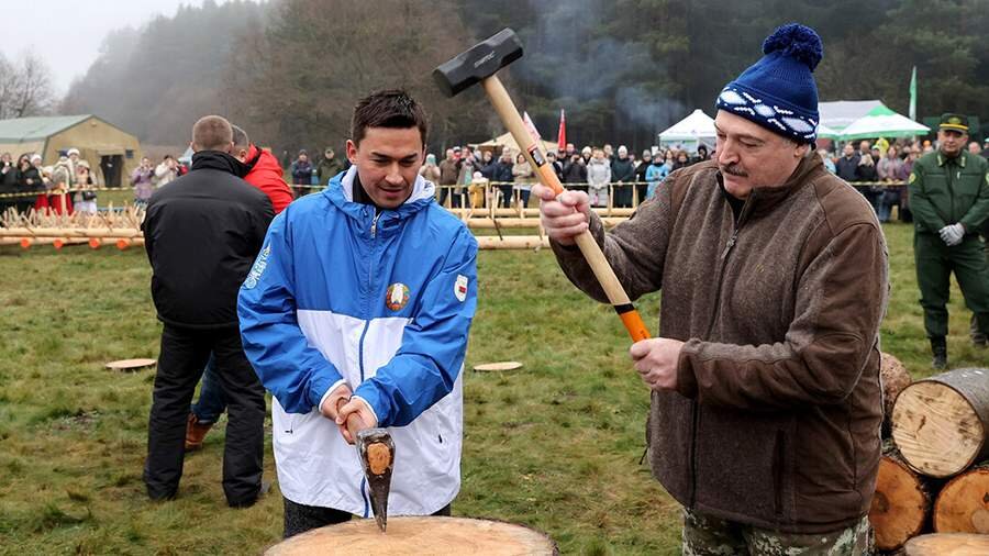 Президент Белоруссии Александр Лукашенко посетил чемпионат по колке дров среди белорусских СМИ и показал мастер-класс. Об этом 7 ноября сообщает Telegram-канал «Пул первого». Белорусский лидер предложил показать мастер-класс по колке дров для всех желающих. В этом ему ассистировал белорусский хоккеист и бизнесмен Дмитрий Басков. Как сообщает агентство «БелТА», Лукашенко показал, как с помощью топора и кувалды разрубить большое толстое бревно, а позднее продемонстрировал рубку мелких бревен. «Ищем трещину и ищем ту точку, куда мы хотим ударить. И по трещине в направлении центра. Желательно рубить так, чтобы полено с колодки не падало», — рассказал он. Первый чемпионат по колке дров среди белорусских СМИ проходит в Минском районе, на берегу водохранилища Вяча. Программа соревнований предусматривает такие дисциплины, как колка дров среди мужчин и среди женщин, переруб бревна топором среди мужчин, эстафета. Также посетителям обещают шоу профессионалов по валке леса, концертную и развлекате