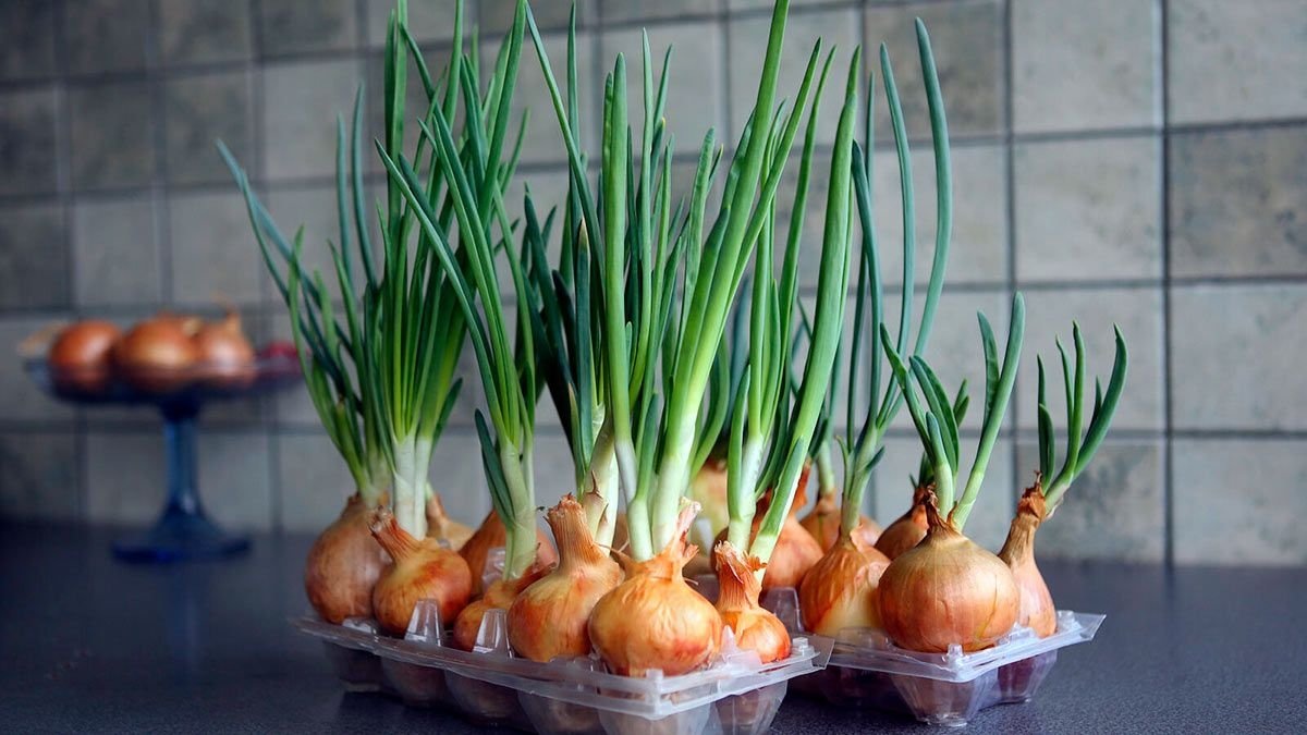 - Поместите в контейнеры лук и поставьте их в любое темное место. Когда начнется рост перьев, выставите лук на освещенный подоконник.