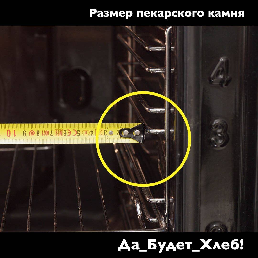 Как правильно выбрать размер пода. Буду писать про камень, но все это актуально для любого варианта (камень, лист…) Чтобы тепло более равномерно распределялось в духовке и пар поднимался свободно вверх, между камнем и стенками духовки должно быть свободное пространство хотя бы по 1 см со всех сторон. Но замерять надо не внутренний размер духовки между ее стенками, а именно внутреннее свободное пространство между НАПРАВЛЯЮЩИМИ при определении ширины и по выступающим частям максимальный размер в глубину (или глубина решетки). Зная свободную ширину и глубину духовки выбираете ближайший размер в меньшую сторону, но максимально большой для эффективного использования пространства. При свободной ширине 42 см лучше выбрать камень шириной 38-40 см. 35 см тоже подойдет, но это ограничивает в количестве и размере выпекаемого хлеба. Пеките, радуйте себя и своих близких ароматным домашним хлебом! Пекарские камни, стальные листы и чугунные плиты для имитации пода всегда в наличии на нашем сайте www.