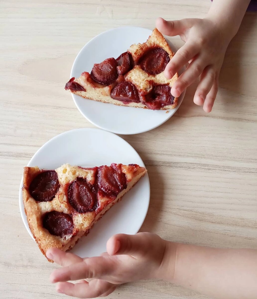 Любимый сливовый пирог. Рецепт: Взбить 125 г мягкого сливочного масла с 0.5 стакана сахара, 10 г ванильного сахара и щепоткой соли. Добавить по-одному 2 яйца, взбивая. Просеять 150 г муки с 1 ч.л. разрыхлителя и вмешать в тесто. Духовку разогреть до 180-200'. Форму смазать маслом и выложить в неё тесто. Разложить половинки слив (свежих или замороженных), аккуратно вдавливая. Присыпать немного каждую сливу смесью коричневого (или обычного) сахара и корицы (2 ст.л.+ 1 ч.л. или по вкусу. Выпекать 35-40 минут Очень вкусно с мороженым, когда ещё тёплый. #выпечка #сливовыйпирог #пирог #выпечкадляначинающих