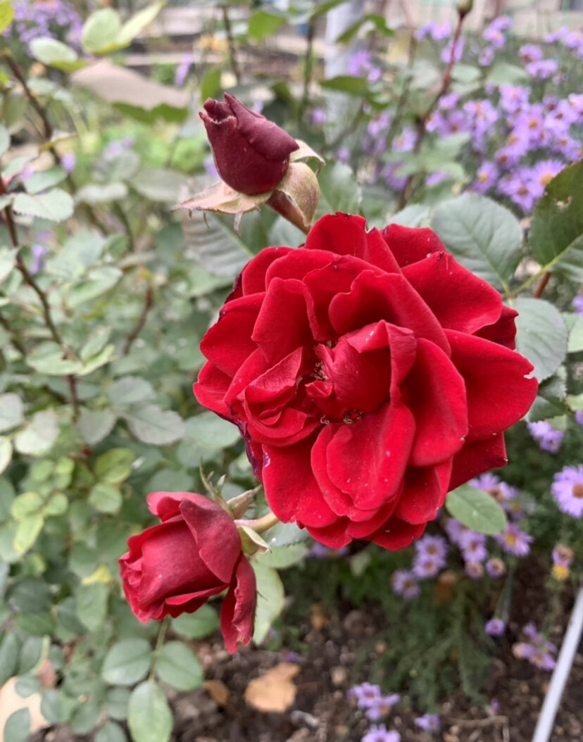По прогнозу погоды обещали заморозки на почве. Ранним утром, посмотрев на градусник, я обнаружила -2 градуса мороза. Цветы, уже все подготовлены к зимовке и только розы осталось накрыть тёплым агроволокном. Выглянув в окно я обнаружила не замёрзшие и поникшие растения цветов, а бодро торчащие цветы. Я удивилась и обрадовалась одновременно. Всегда очень печально расставаться с красотой лета и так хочется продолжать любоваться яркими цветами за окном. Выйдя на улицу, я сделала несколько снимков оставшихся цвести стойких к холоду цветов. Ещё меня очень удивили осенние первоцветы , которые взошли и набрали нежно голубые бутоны, сквозь осеннюю листву. Словно это весна позвала их к цветению. Что за сорт я не знаю, цветы луковичные сажала рядом с рябчиками. Может кто знает что это за луковичный цветок? Вегетативная ампельная гвоздичка оказалась морозостойкая к небольшим понижениям температуры. Я уже писала о ней в статьях. Если кто ещё не знаком, можно прочитать перейдя по ссылке ниже
