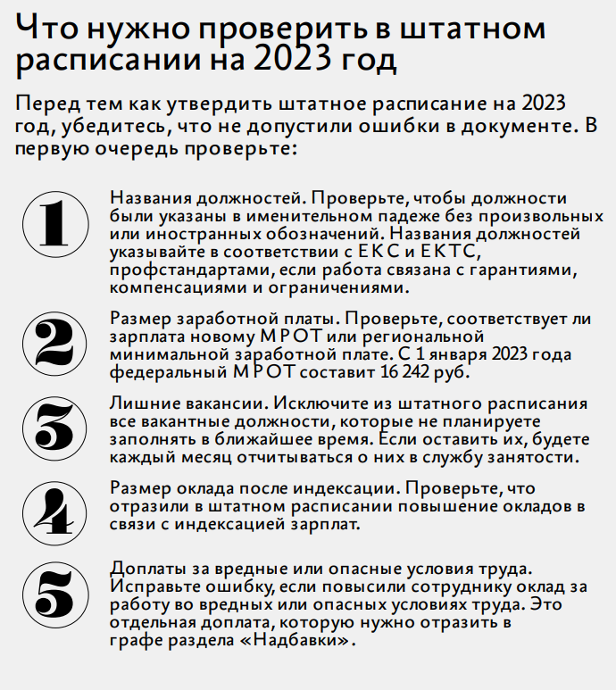 Памятка. Что нужно проверить в штатном расписании на 2023 год