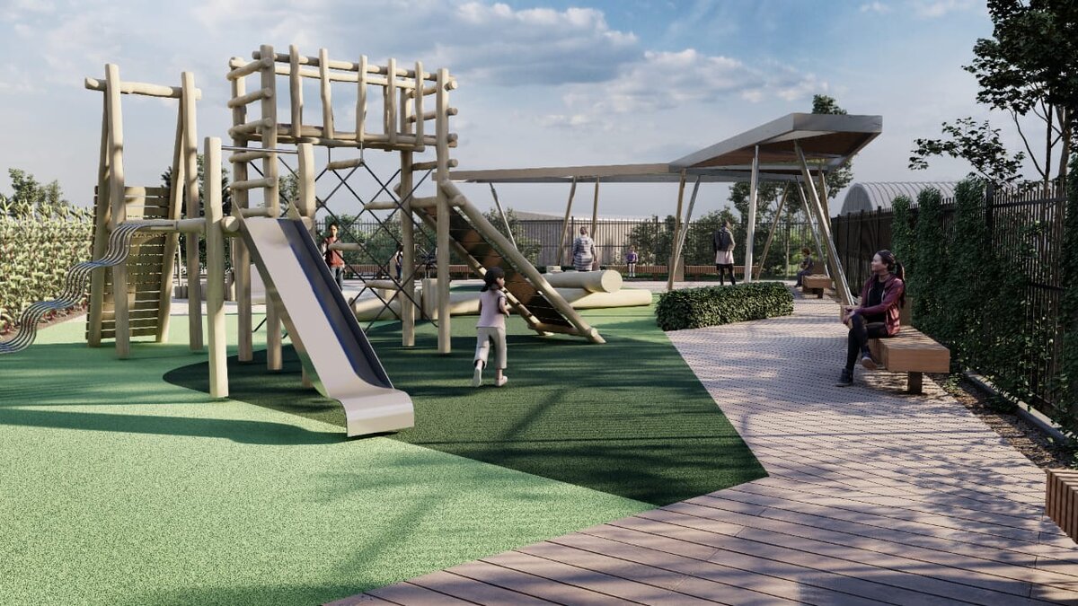 В основу концепции благоустройства дворовой территории ЖК «Репинские пруды» мы взяли тему природных материалов, таким образом гуляя на площадке ваш ребенок не только играет с друзьями, но и одновременно познает окружающий мир. 3. На площадке есть место для родителей!