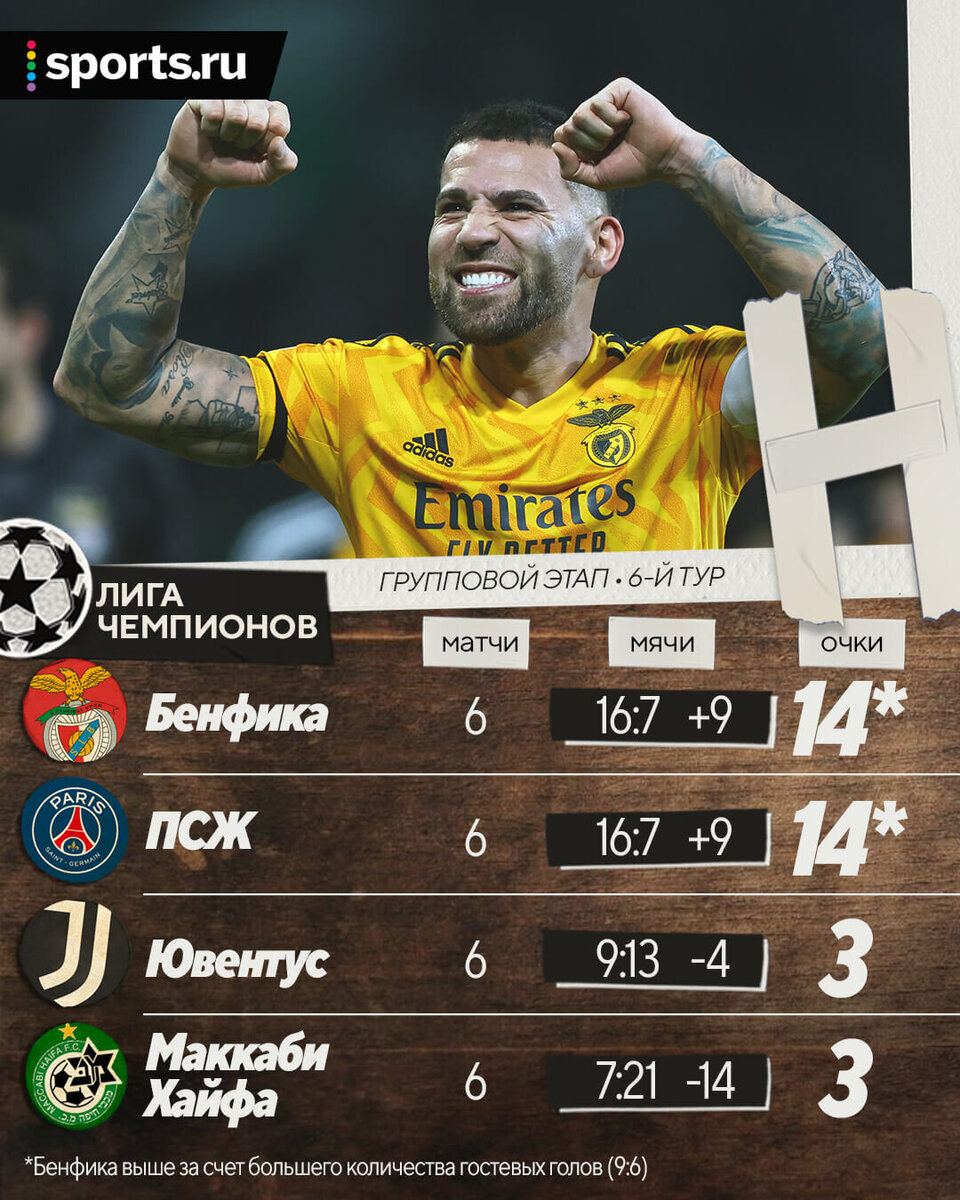 Жоау Мариу не зря добивал на 92-й минуте. В Ньоне прошла жеребьевка 1/8 финала Лиги чемпионов. Одна из главных пар – противостояние «ПСЖ» и «Баварии», которые в 2020 году встретились в финале. Тогда мюнхенцы победили 1:0 – благодаря голу воспитанника парижан Кингсли Комана. На этот раз команды бы не попали друг на друга так рано, если бы не шикарная развязка в группе H. Напомним, перед последним туром «ПСЖ» и «Бенфика» боролись за первое место в группе заочно: парижане играли в гостях с «Ювентусом», лиссабонцы – на выезде с «Маккаби». У них было по 11 очков, но «ПСЖ» опережал по разнице мячей уверенно – на четыре. Так как между собой оба раза сыграли 1:1, в любом случае потребовались бы дополнительные показатели. «ПСЖ» в своем матче выиграл 2:1, улучшив разницу до +9 (16:7). «Бенфика» об этом знала, игра в Израиле получалась – португальцам нужно было довести цифры до таких же, выиграть в пять мячей. На 69-й минуте они сделали только 3:1, но активизировались и добили соперника. Забили н