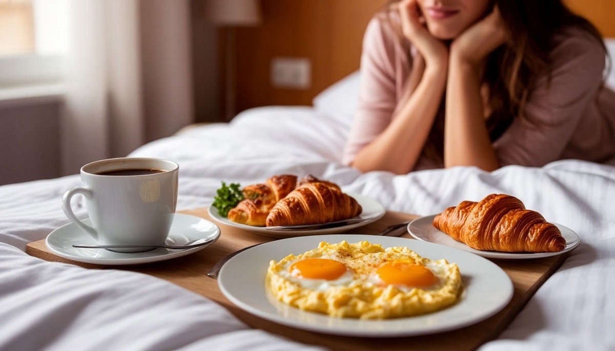 И первое, что девушка увидела, открыв глаза, была чашка кофе. На секунду её показалось, что она ещё спит, но моргнув, Настя поняла, что прямо перед её носом стоит поднос, на котором красиво разместились яичница, круассаны, разрезанные пополам и наполненные чем-то, пирожное и чашка кофе. Поднос еле уместился на небольшой тумбочке возле Настиной кровати. А самое интересное было то, что девушка точно знала: в её доме подносов нет.