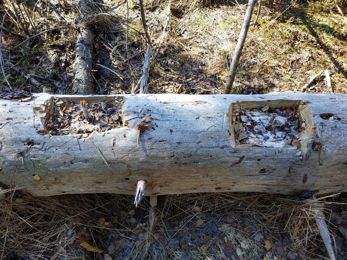 Уже после, снова наполнял эти ямки солью, но уже обычной, магазинной, а в этом году пока там не был, нужно посмотреть, все ли на месте. Ведь, дерево могло прогнить, его могли убрать лесорубы (вряд ли, но все же), да и вообще, интересно.