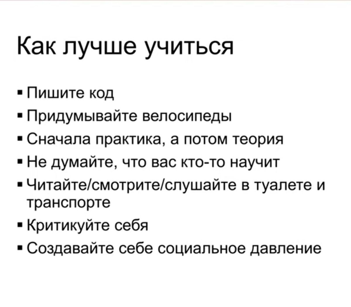 Посему, нужно писать код, набивать руку. Если вы что-то новое выучили, то спешите это использовать на практике, в своем пед.проекте, чтобы понять как это работает на самом деле.