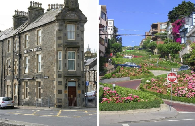 Большинство людей согласится с тем, что многие улицы и переулки в наших городах просто залиты бетоном и, в общем-то, мало чем отличаются друг от друга. Но после прочтения этой статьи вы поймёте, что существуют весьма необычные улицы и переулки, и, возможно, захотите поделиться в комментариях, если нечто подобное есть в ваших краях. МИР ФАКТОВ подготовил подборку сложных перекрёстков, крутых улиц со страшными спусками и переулки с интересными строениями, привлекающие внимание. Нелегко понять, о чём мечтали архитекторы, спроектировавшие эти улицы и дороги, но большинству туристов лучше просто наслаждаться их необычностью, нежели искать ответ на этот вопрос. 1. Эбенезер-Плейс (Ebenezer Place), Уик, Шотландия Эта крошечная улочка, на которой расположен только отель Маккейз (Mackays Hotel), — пожалуй, единственная в мире, на которой невозможно развернуться. Общая длина улицы составляет 2,06 метра. Эта улица, построенная для отеля, который был возведён в 1883 году, официально была открыта