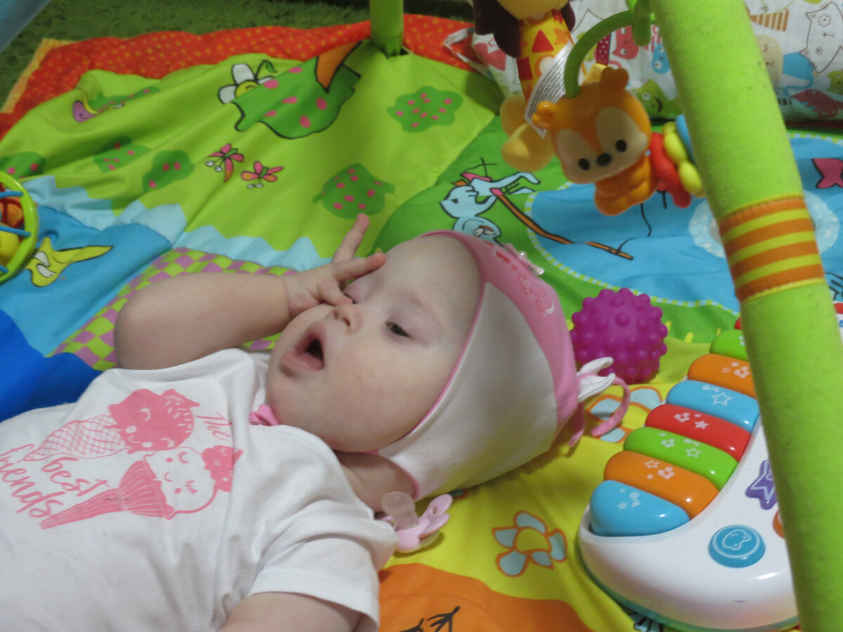 Все что в жизни не делается, все к лучшем. С одной стороны Полинку отдали так быстро, что я не успела как следует приготовиться, с другой стороны наша первая неделя дома совпала с детскими каникулами. Так что была возможность адаптироваться к новому образу жизни, в спокойных условиях, без авралов. Что больше всего меня напрягает в поведении малыша Полли, так это да же не отставание в физическом развитии, а отстает она да же по меркам детей с СД, а её навыки общения. Точнее полное их отсутствие. Если в физическом плане она развита месяцев на 6-7. Переворачивается, крутится во все стороны и по кругу, подползает к игрушкам, играет ими, перекладывает из руки в руку, гремит, стучит, кушает с ложки. То в плане общения навыки отсутствуют совсем. Плачет она только если схватит себя за ухо. Во всех остальных случаях, будет стараться добраться до уха. Другого способа обратить на себя внимание у неё нет. Она не обращает внимания, когда я подхожу к кроватке, не смотрит на меня, не следит за м