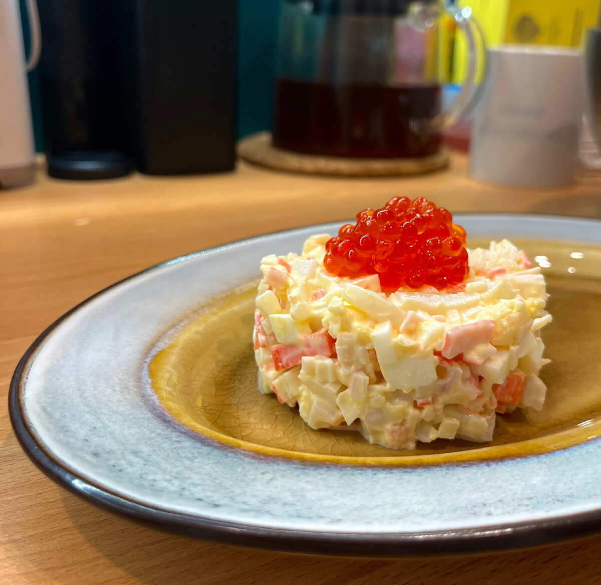 Я думаю, шо вы и без меня шарите за этот салат, но я все равно вам расскажу конечно, а иначе нахрена мы тут все собрались. Просто тупо вкусный салат с крабовыми палками, кальмарами и яйцом. Если вы понторез, то еще можно конечно и икры сверху накрячить. У меня вот случайно есть, так что сам бог велел. Чо нада: 🦑 кальмары 🍳 яйцо 🦀 крабовые палки 🍶 мазик для заправки, или если вы там на всяких простихоспади пэпэ - йогурт с горчицей вместо него смешайте. Но с мазиком вкуснее. 🧂 соль и черный перец Кальмаров, палок и яиц должно быть примерно одинаково по объему. Кальмаров очистить от всего непотребства, закинуть в кипящую воду, через 2 минуты вытащить и сунуть в холодную - остановить варку и охладиться заодно. Яйчишки сварить вкрутую. Все это добро вместе с крабьими палками порубать средне, замешать, заправить, посолить/поперчить и жрац. Вуалябля! Кто-то еще туда сует всякие зелени, жареный лук, чеснок и всё такое. Ящитаю, что это всё лишнее, вкусно без этого, но вам конеш никто не
