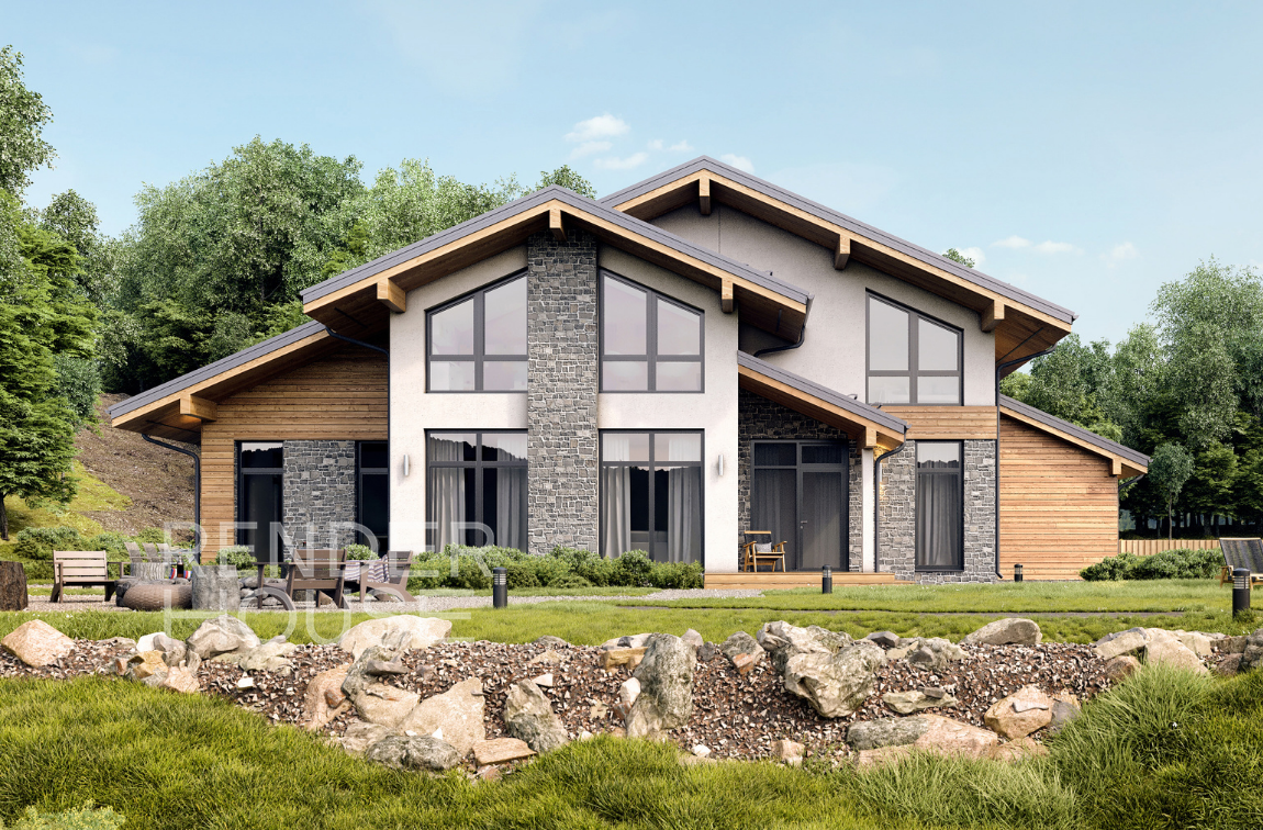 И уже начали его реализацию — в коттеджном посёлке GreenWood-2. Здесь будет построен дом площадью 282 кв.м. в стиле шале с панорамными окнами и мансардой, с 5 спальнями, 3 санузлами, комфортной общей зоной, кабинетом и гаражом.