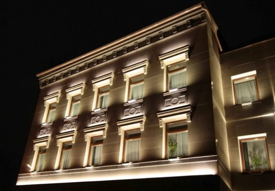 Это очень яркое световое пятно у основания светильника и плохое рассеивание света по фасаду. К световому ожогу приводит неправильно выбранный световой поток либо оптика светильника. Избежать такой ошибки можно натурными испытаниями. Перед монтажом светильника прислоняйте его на разном расстоянии от фасада, определяя, когда свет ложится более равномерно. Вы также можете обратиться к профессионалам за расчетом освещения в программе «Диалюкс».