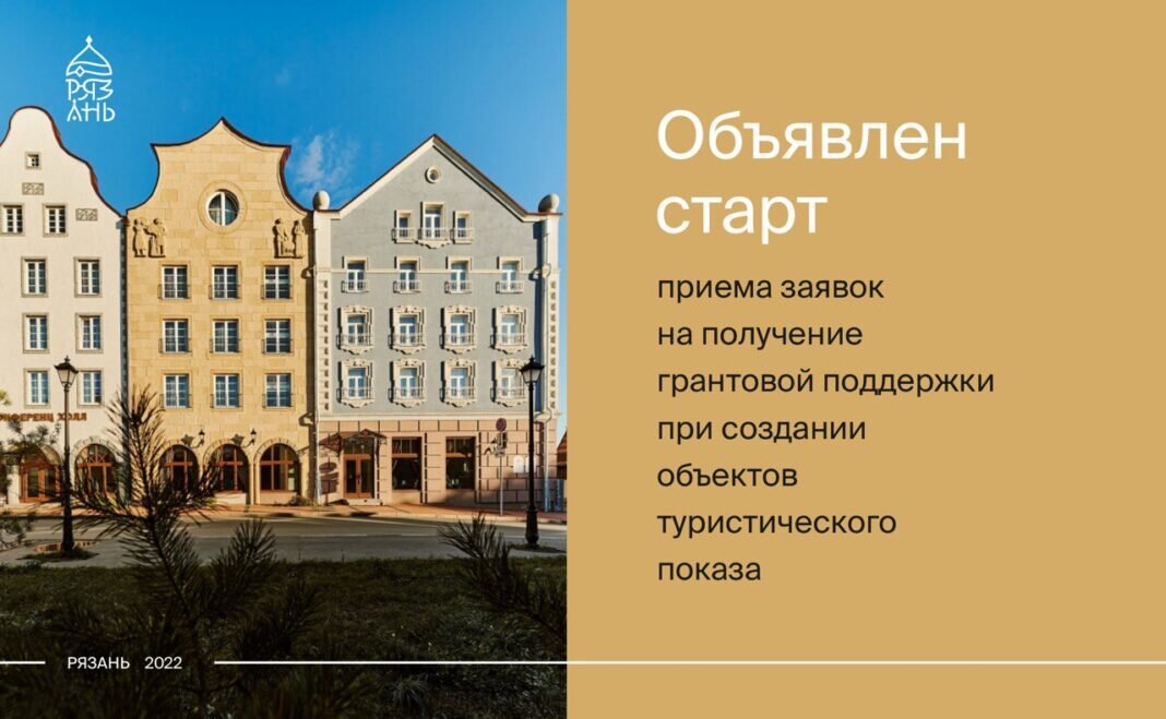 Министерство экономического развития Рязанской области сообщает о начале проведения конкурсного отбора по предоставлению юридическим лицам и индивидуальным предпринимателям грантов на финансовое обеспечение затрат по реализации проектов по созданию объектов туристского показа, экскурсионных программ с использованием цифровых технологий. Гранты предоставляются в форме субсидии и не распространяются на государственные и муниципальные учреждения. Размер гранта на одного участника составляет до 1 млн 500 тыс. рублей при обязательном софинансировании не менее 30% планируемых расходов. Заявки на участие в конкурсном отборе принимаются с 7 ноября по 6 декабря 2022 года по следующим направлениям грантовой поддержки: — строительство, реконструкция, реставрация, ремонт, капитальный ремонт зданий, сооружений в целях создания объекта туристского показа (музеи, арт-площадки, выставочные залы); — создание экспозиций, покупка экспонатов; — создание цифровых экскурсионных программ с использованием VR/
