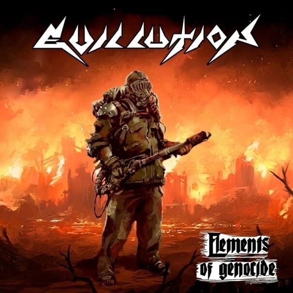 Но сейчас мы поговорим о португальском коллективе EVILLUTION. Появилась эта группа относительно недавно, но успела разродиться альбомом «Elements of Genocide». На котором самой шикарной вещью, безусловно, является обложка. Мужик в противогазе и костюме химзащиты с гитарой наперевес – мм, лепота! Такие облоги в своё время делал легендарный Эд Репка.