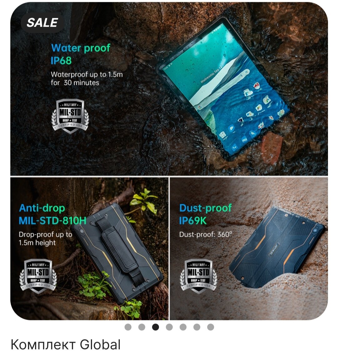 Доброго времени суток, Друзья! Сегодня мы расскажем Вам о лучшем, на наш взгляд, среднебюджетном планшете. Знакомьтесь - это Oukitel RT2. Устройство относится к категории защищённых, причём по самому высокому стандарту, IP69. Этот монстр легко выдерживает падение с высоты до 1,5 метров и обладает защитой от воды, пыли и даже песка.