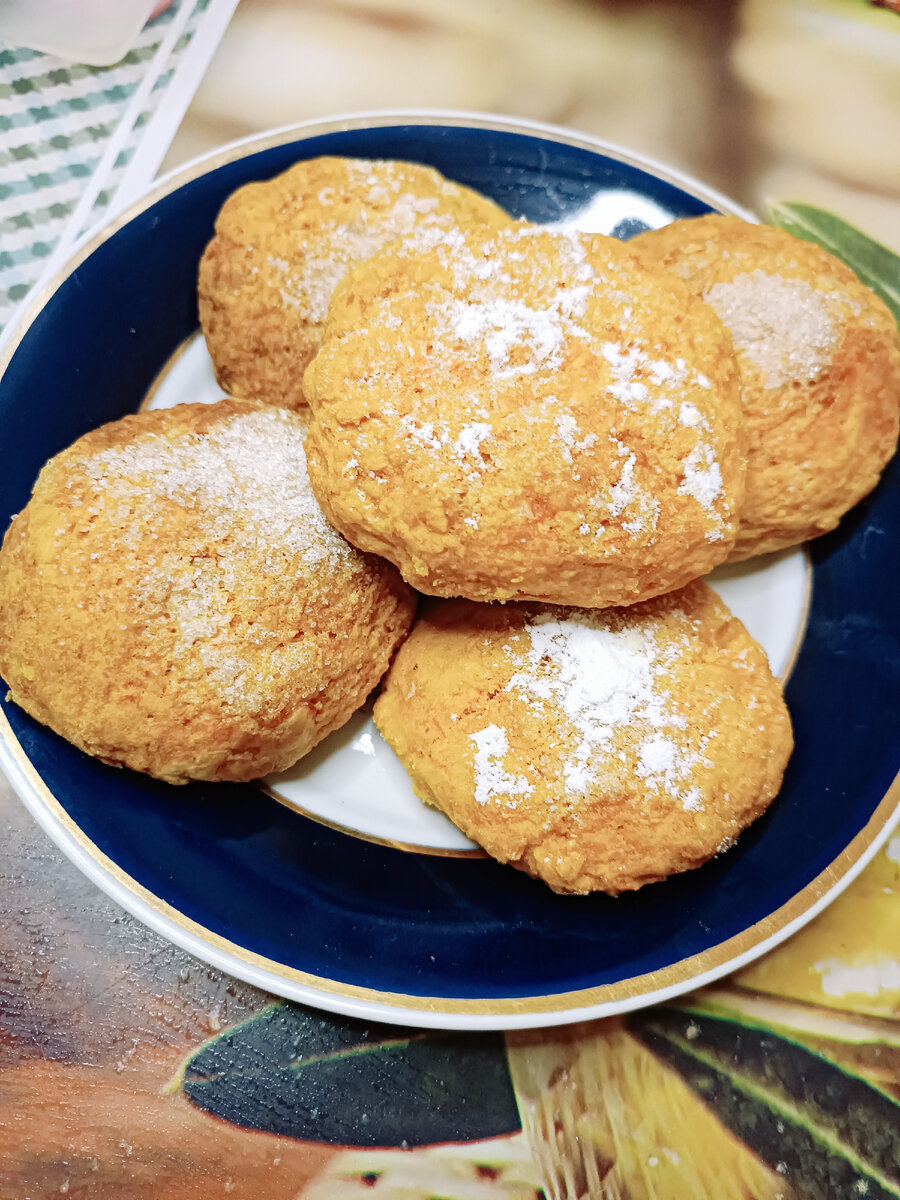 Включаем духовку для разогрева до 180 градусов. Шаг 1. Морковь очищаем и натираем на самой мелкой терке. Шаг 2. Шаг 3. Шаг 4. Шаг 5. Все тщательно перемешиваем. Шаг 6. Шаг 7. Из полученного теста руками, смоченными в воде, формируем шарики. Противень застилаем пергаментом и выкладываем туда шарики из теста на расстоянии друг от друга. Шаг 8. Шаг 9. Печенье остужаем и выкладываем в корзинку или на блюдо для подачи. По желанию, печенье можно посыпать сахарной пудрой. Приятного чаепития.