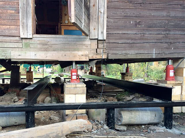 Если фундамент требует полной замены или капитального ремонта при котором нужен доступ ко всей (внутренней) конструкции фундамента находящейся под домом, например, замена/ремонт или установка дополнительных свай или опор, потребуется подъём стен дома.