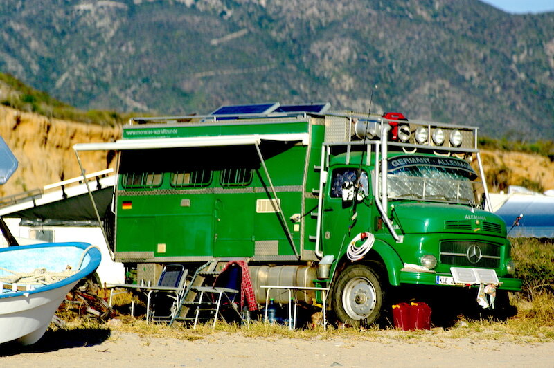 Лет пятнадцать назад, выбирая место для очередного ночлега в Мексиканской глуши, среди колючих непролазных кустарников и кактусов мы с женой случайно наткнулись на старую грузовую машину военного образца с немецкими номерами и мерсовской шильдой на решётке радиатора. Нечто подобное знаменитой советской «шишке» (ГАЗ – 66) с крытым металлическим кузовом. Автомобиль стоял около двух небольших пальм на берегу моря Кортеса, прямо на нашем пути. Обычно в этом месте мой полноприводной «Шевик» упрямо вгрызался в морскую гальку и на пониженной скорости двигался ещё метров сто южнее. Там, среди разновеликих мексиканских колючек протыкали небо целых пять пальм, между которыми мы прошлой зимой вырубили отличную полянку, куда другие люди никогда не забирались из-за боязни сесть «на брюхо». Деваться было некуда – я громко стукнул кулаком по железному немецкому ящику, откуда тотчас выскочил кряжистый седой мужичок среднего роста возрастом явно за пятьдесят, а то может даже и шестьдесят лет. Его небритое лицо можно было без всяких дополнительных макияжей ставить на обложку любого глянцевого издания – про яхты, автомобили, самолёты, галстуки и дорогие одеколоны.
