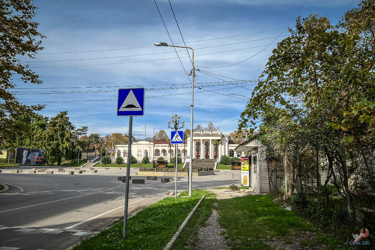 Отправляясь на остановку общественного транспорта где курсируют маршрутки до Сухума, мы решили проделать путь через привокзальную площадь и посмотреть как выглядит железнодорожный вокзал в Гудауте.