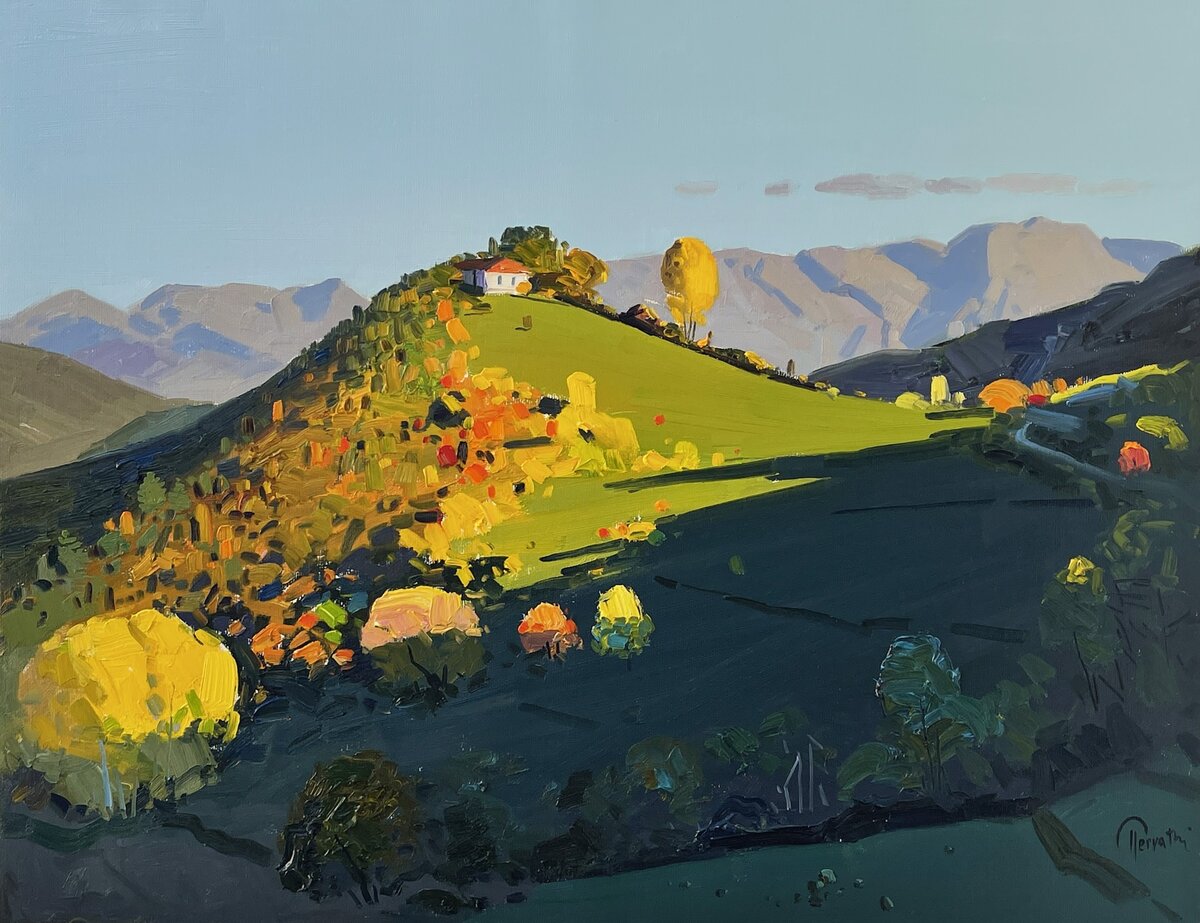 Смена времен года, лошади на бескрайнем лугу, одинокий домик, стог сена, лодка на берегу, ручьи, реки, море, горы и холмы — все это составляет главную тему работ Пашка Первати.