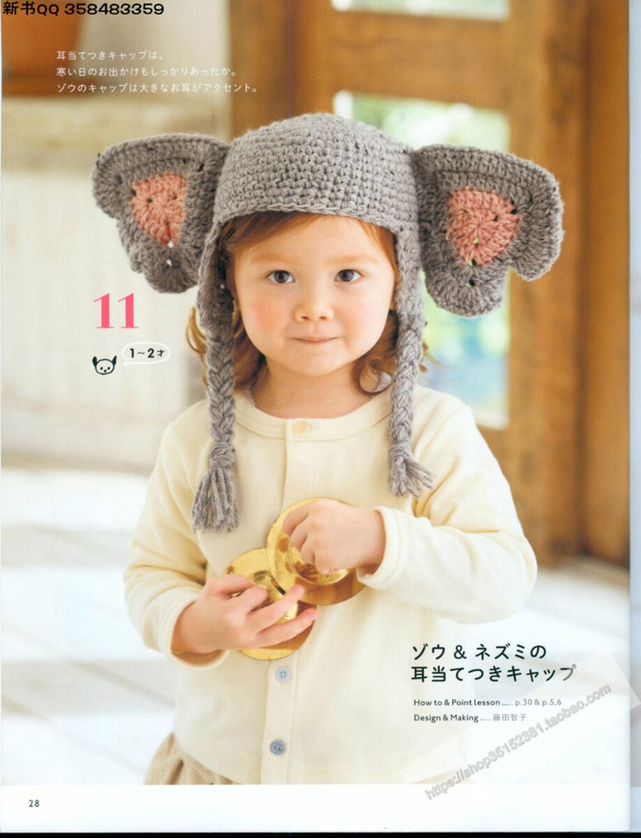 Симпатичные шапочки вяжем крючком. Слон и мышка подходят на возраст от года до двух лет, медведь и лисёнок - на три и четыре года.