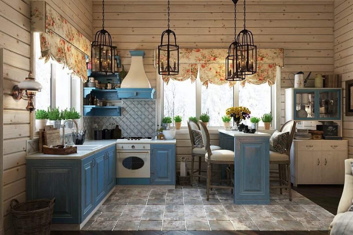 Кухня, оформленная в сельском стиле, украсит обстановку загородного дома и создаст комфортную атмосферу в городской квартире. Уютный кантри, романтичный прованс, антикварный шале остаются на пике популярности. В статье мы раскроем основные черты этих стилей и расскажем о правилах оформления деревенского пространства. Главные особенности Чтобы создать по-настоящему уютную атмосферу, поэкспериментируйте. Ситцевые шторы украсьте кружевами, прозрачный тюль подвяжите тканевыми лентами, полочки накройте цветными рушниками. Цветовая гамма Подойдут все природные оттенки: серые, бежевые, коричневые, а также спокойные зелёные, синие, жёлтые. Такие яркие цвета, как красный или оранжевый, возможны лишь в качестве акцентов. Мебельные чехлы, шторы, занавески не должны быть в тон стенам. Это выглядит однообразно и скучно. Подбирайте необычные сочетания. Окна и освещение Пластиковые рамы неуместны, поэтому предпочтение отдаётся дереву. Занавески лучше сшить из ткани с цветочными принтами или в клеточк