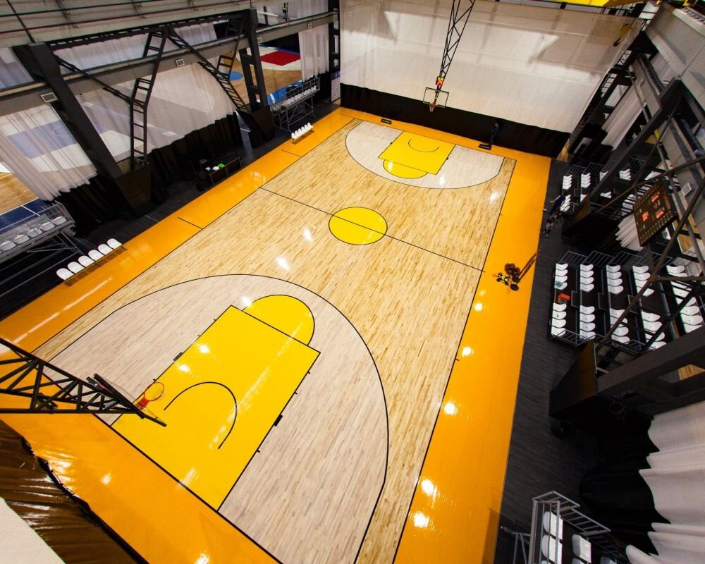 Баскетбольная площадка - это ограниченная двумя боковыми и двумя лицевыми линиями площадь для игры в баскетбол. Она представляет собой твёрдую прямоугольную плоскую поверхность, на которой не расположены никакие препятствия. Истоки Первая баскетбольная площадка была ограничена размерами спортивного зала колледжа, в котором она находилась. В 1891 году преподаватель физического воспитания Джеймс Нейсмит изобрел эту игру в колледже Спрингфилд в Массачусетсе. Для колец Нейсмит использовал персиковые корзины. В своих первоначальных 13 правилах Нейсмит не указал конкретных размеров баскетбольной площадки. Вместо этого игроки адаптировали свою игру в зависимости от спортивного зала. Эволюция По мере роста популярности баскетбола командам требовались стандартные размеры площадки. В 1924 году правила по размерам площадок предполагали, что они могут быть максимум 90(27м) на 50(15м) футов и минимум 60(20м) на 30(10м) фута. Высота бортика корзины составляла 10 футов(3,05м) и остается такой и в 202