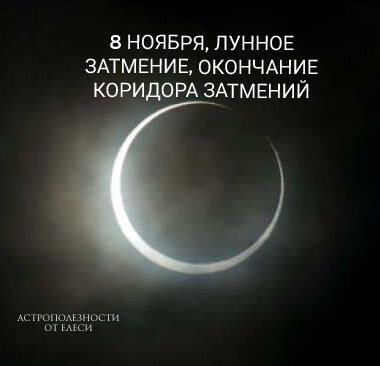 🌑Коридор затмений закрывается Лунным затмением, которое будет 8 ноября в 12.02 по Мск, пик примерно в 15 ч. по Мск.
