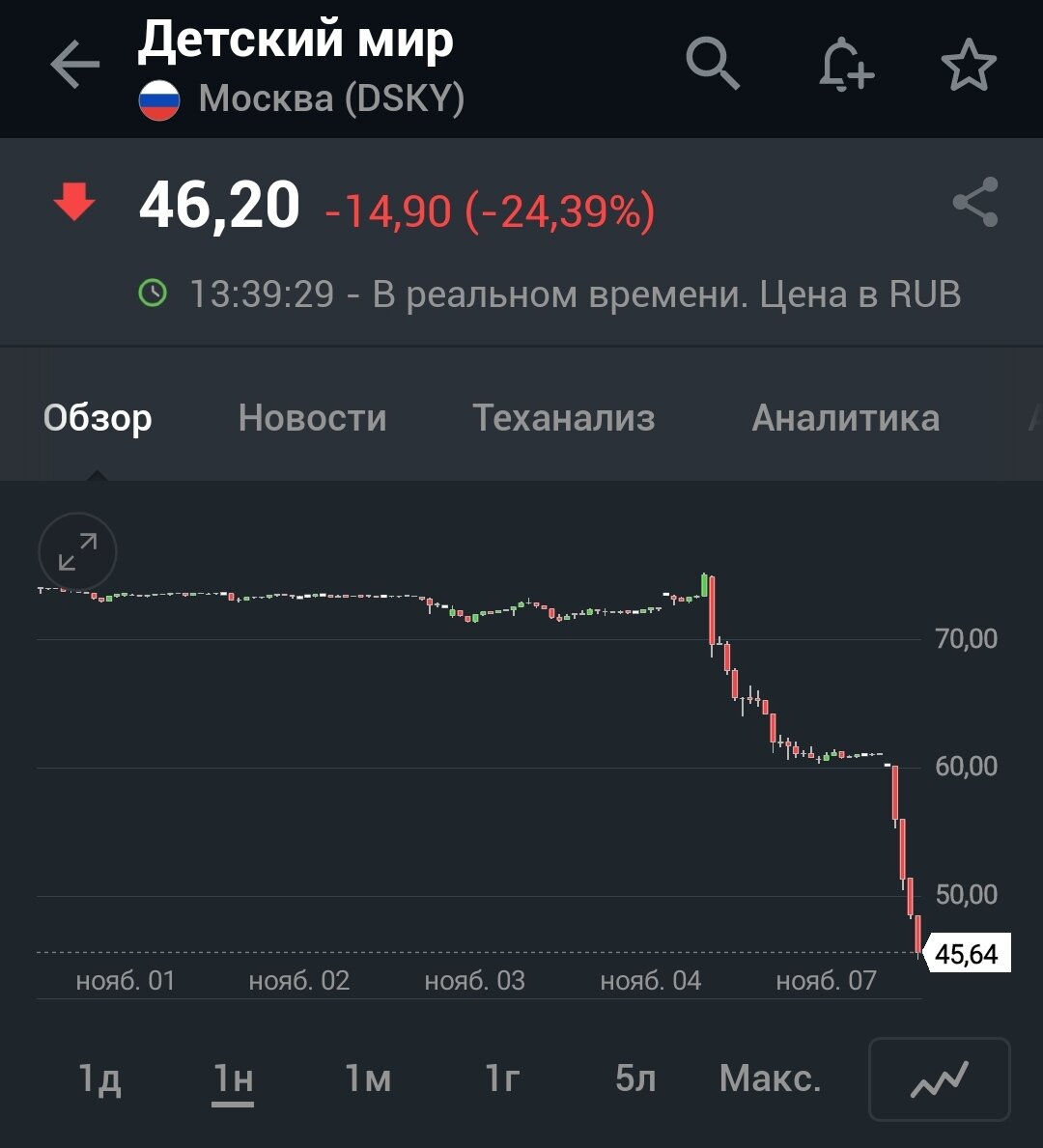 $€ Ловить падающие ножи - это именно то, что делают сейчас покупатели акций "Детский мир". Акции упали, уже почти в два раза, за пару дней. И естественно, привлекают внимание покупателей. Как мухи на мёд, летят наши спекулянты. Хотя, слово мёд здесь, навряд ли подойдёт.😊 И возникает вопрос: "Что делать?". Я говорю со всей ответственностью - не лезьте. Это авантюра, в которой вы проиграете в любом случае. Как это произойдёт? Есть два сценария: Первый - вы потеряете много и в короткое время. Сразу. Второй, вы много заработаете. Это приведёт к искажению вашего мышления. Радость и гормоны отключат ваш мозг, что помешает вам смотреть на ситуацию объективно. И потом, после удачной сделки, вы вновь вернëтесь в эти акции. И там уже смотрите первый пункт. На момент написания статьи, торги по акциям ДМ приостановлены биржей. Обсуждать перспективы акций бесполезно. Мы этого не знаем. Будет выкуп, не будет. По какой цене. Это мало кому известно. А те, кто знает - они об этом скажут в конце. П