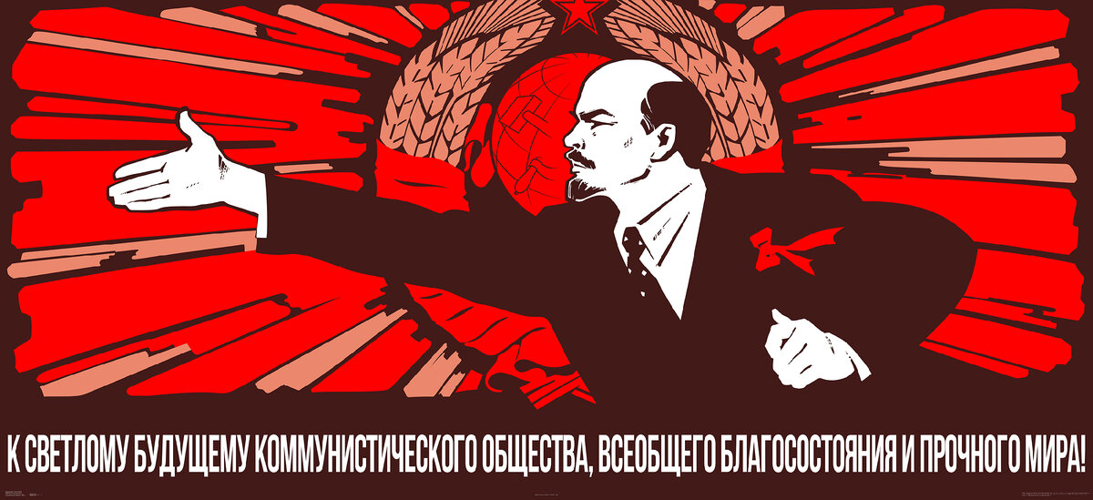 Плакат «К светлому будущему коммунистического общества, всеобщего благосостояния и прочного мира!».