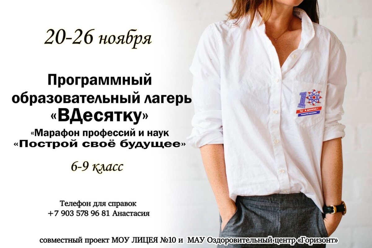 В недельной смене могут поучаствовать ученики 6-9 классов. Помогает лагерю с организацией лицей №10. Кроме общения со специалистами, в том числе психологами, и профориентационных проб участников ждут исторический клуб, обучение оказанию первой медицинской помощи, биологические и химические опыты и квесты.